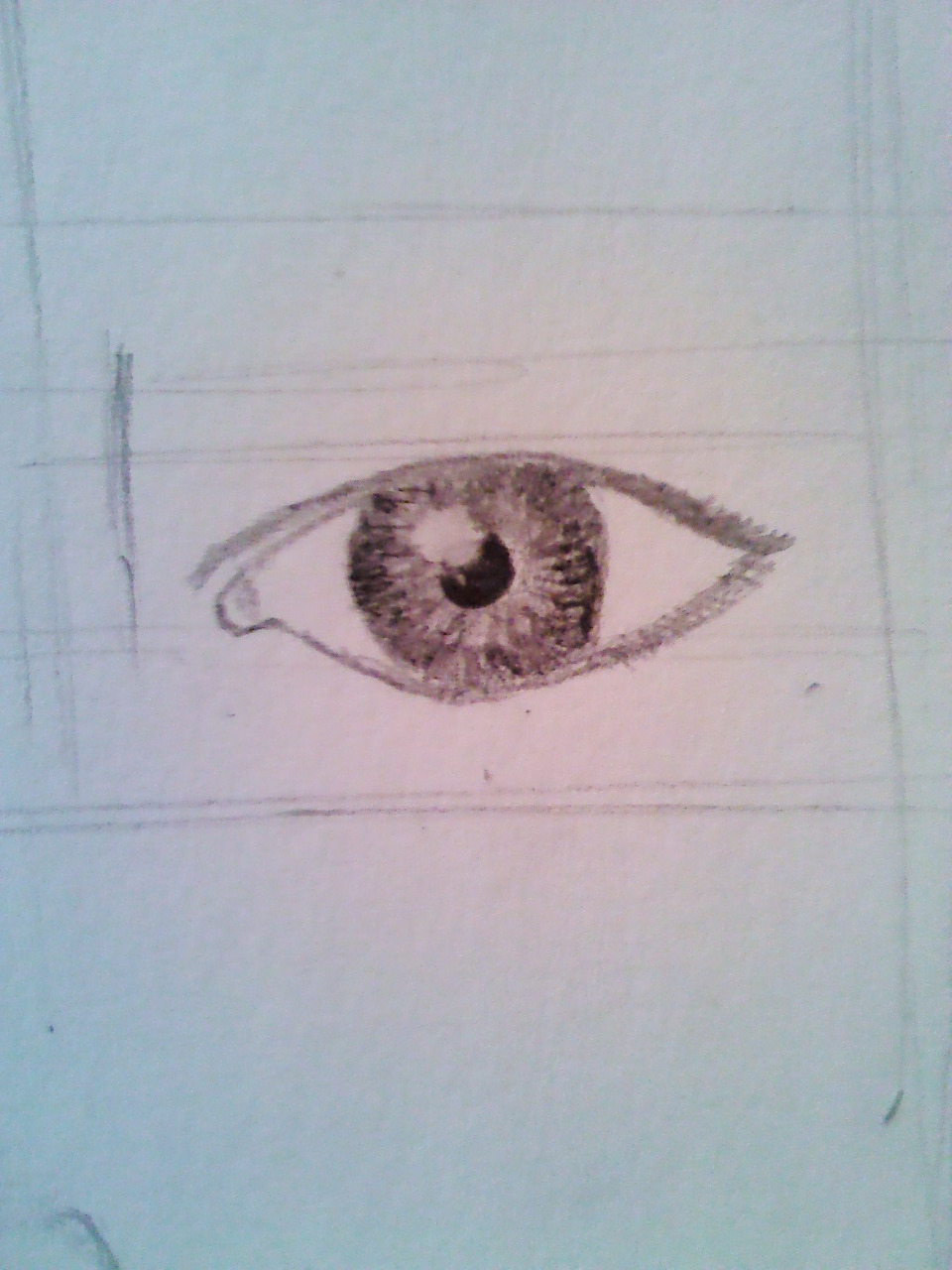 2. Záblesk svetla v oku som urobila pomocou tenkej gumy. Vytvorila som bielu bodku medi zreničkou a dúhovkou. To isté som urobila aj na druhom oku, na presne tom istom mieste.